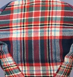 Das Kleid aus Jacke und Rock besteht aus schottisch kariertem Wollstoff in Weiß, Rot, Grün und Blau.