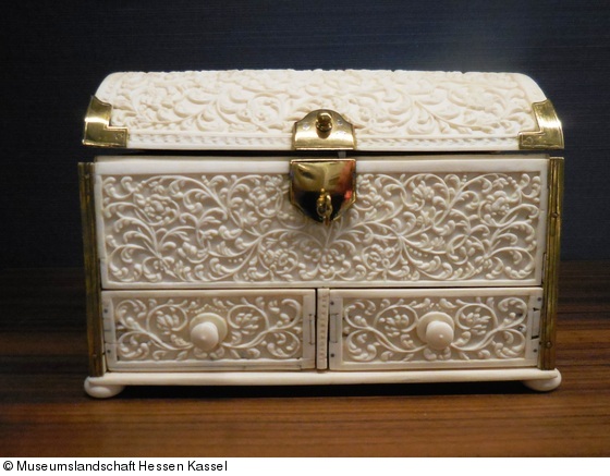 Elfenbeinkasten mit zwei Schubladen und gewölbtem Deckel |