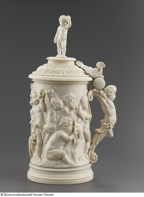 Deckelkrug aus Elfenbein mit Puttenbacchanal