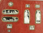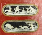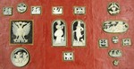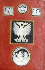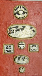 27 kleine Reliefembleme aus Elfenbein in einem Rahmen |