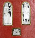 Pappe, Elfenbein, geschnitzt und poliert,; Rahmen: Holz vergoldet, Glas |
