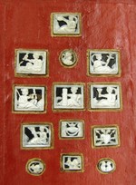 42 kleine Reliefembleme aus Elfenbein in einem Rahmen |