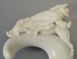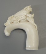 Stockgriff mit Mann, der auf einem Schwein reitet