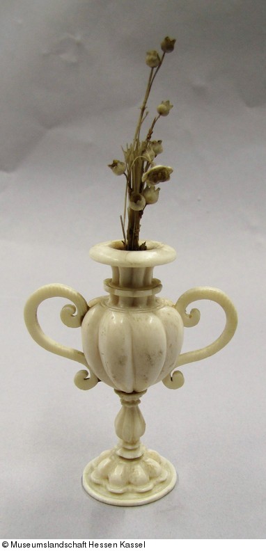 Henkelvase mit Maiglöckchen-Zierstrauß (Deckelbekrönung) |