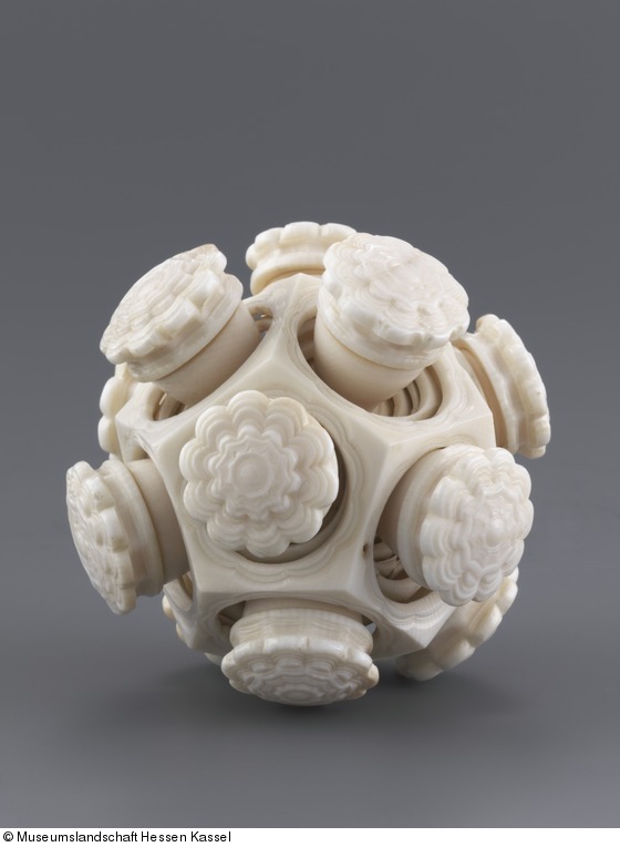 Zwölfseitig gearbeite Contrefaitkugel mit kleinen Döschen