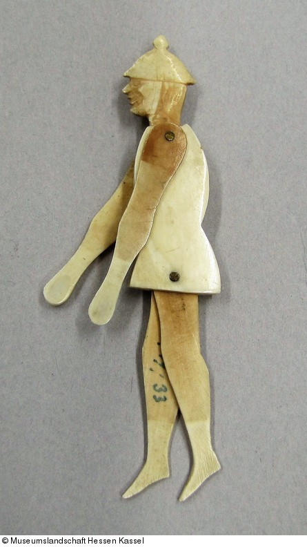 Ohrlöffel in Form eines Soldaten mit beweglichen Gliedern aus Elfenbeinplättchen