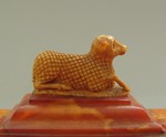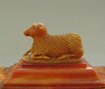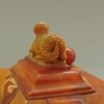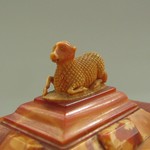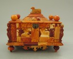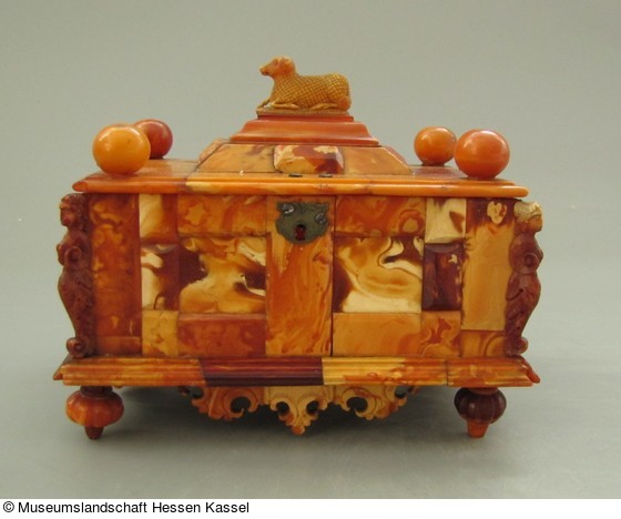 Kleines Bernsteinkästchen mit Lamm auf dem Deckel
