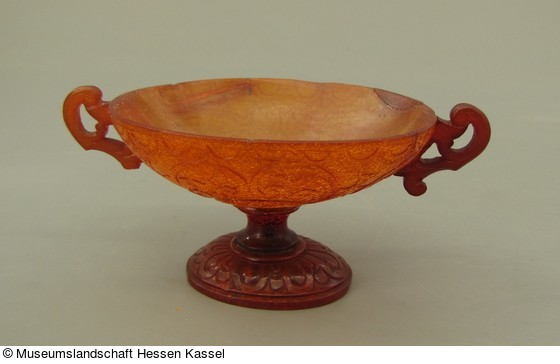 Bernstein, gesägt, gedrechselt, geschabt und graviert (5 Teile zusammen gesetzt) |