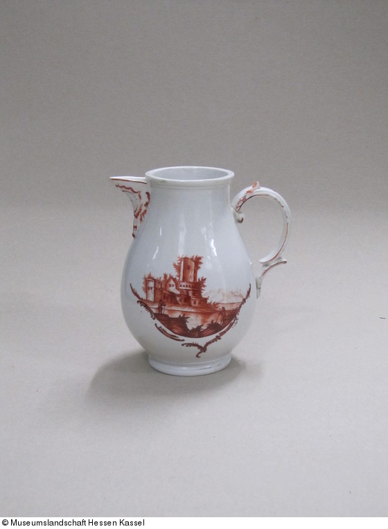 Milchkanne mit Fluß- und Ruinenlandschaft in Eisenrot