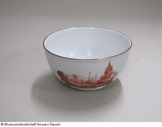 Porzellan, bemalt in Eisenrot (Aufglasur) |