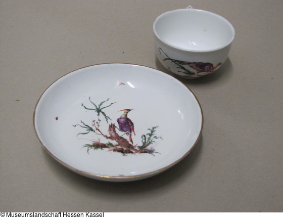Porzellan, glasiert und bemalt, mit Goldstaffage |
