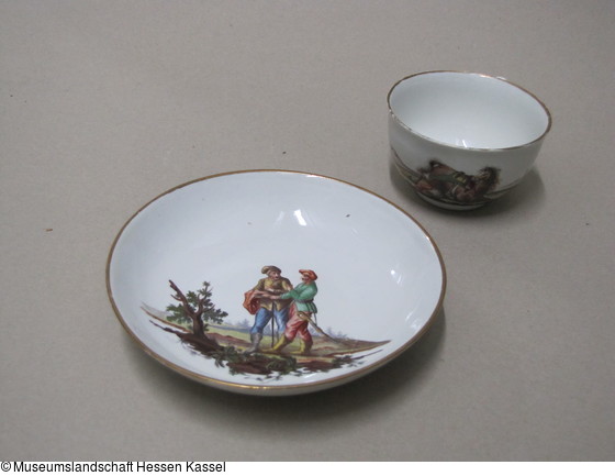 Tasse und Untertasse eines Services mit Kampfszenen aus dem Türkenkrieg |
