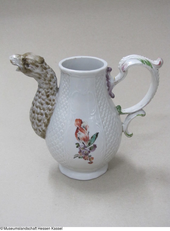 Kännchen mit Blumenmalerei der Grassin, der Ausguß einen Vogel darstellend |
