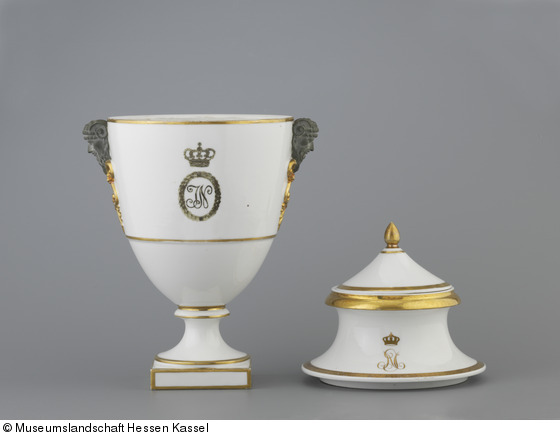 Aufsatz der Deckelvase mit Maskengriffen und bekröntem Monogramm der Initialen JN (Jérôme Napoléon) |