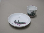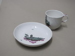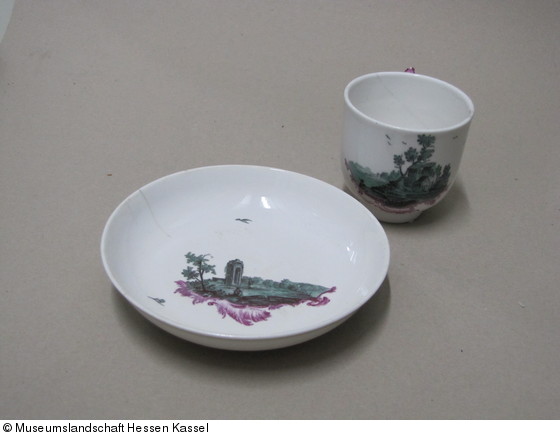 Tasse und Untertasse eines Services mit Ideallandschaften
