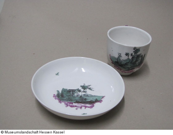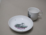 Tasse und Untertasse eines Services mit Ideallandschaften