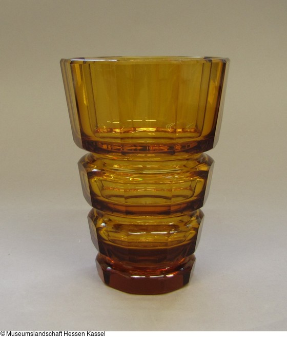 Glas, bernsteinfarben transparet, in Form geblasen, Kanten abgefast und poliert |