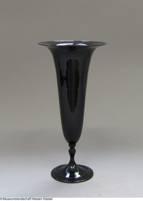 Dunkelviolettes Glas, mundgeblasen, Fuß angesetzt |