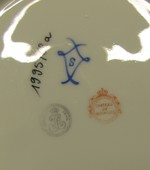 L S 1846 (in Unterglasurblau, eine Marke in Aufglasur; Louis-Philippe-Marke in Grau mit der Jahreszahl 1846, in Eisenrot; Stempel für das Schloß Versailles.; Firmenmarke (verschlungene, gegenständige L, die ein S umrahmen); Louis-Philippe-Marke 1846; Stempel für das Schloß Versailles.);