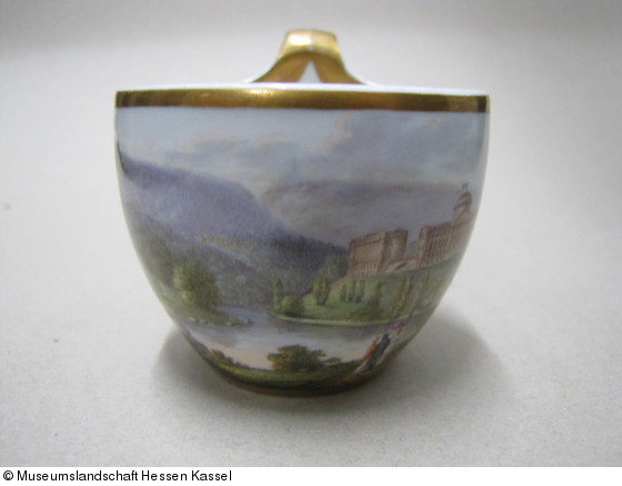 Tasse in Campanerform mit Ansicht des Bergparks und Schloss Wilhelmshöhe ("Napoleonshöhe")
