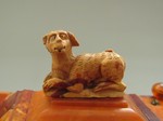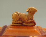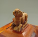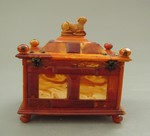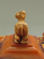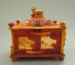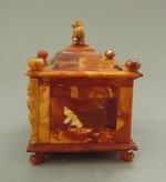 Kleines Bernsteinkästchen mit Hund auf dem Deckel |