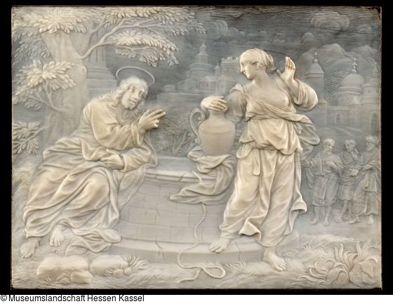 Elfenbein, geschnitzt; mit Holz: Eiche hinterlegt |