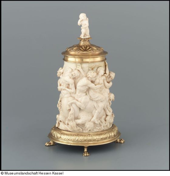 Silbergefaßter Elfenbeinhumpen mit Kampf der Kentauren und Lapithen und dem Raub der Hippodameia