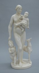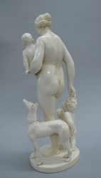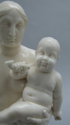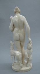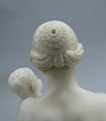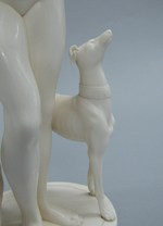 Elfenbein, gesägt, gebohrt geschnitzt und poliert, der Hund ist separat gefertigt und eingesteckt. |