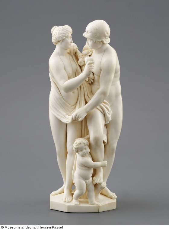 Leonhard Kern (1588-1662) gilt als einer der wichtigsten deutschen Bildhauer des 17. Jhs. Neben Arbeiten aus Alabaster, Holz, Speck- und Sandstein schuf er insbesondere Elfenbeinskulpturen. Schon von seinen Zeitgenossen hochgeschätzt, sind seine Werke in vielen Kunstsammlungen Europas zu finden. Die Landgrafen erwarben die Skulpturen allerdings nicht beim Künstler direkt. Vielmehr stammen "Mars, Venus und Amor" aus dem Nachlass des 1682 verstorbenen Straßburger Sammlers Elias Brackenhoffer.
