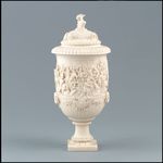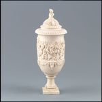Elfenbein, gesägt (Sockel), gedrechselt, geschnitzt und poliert |