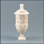 Elfenbein, gesägt (Sockel), gedrechselt, geschnitzt und poliert |