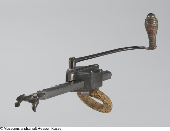 Spannhilfen wie die Zahnstangenwinde dienten dazu, das Spannen der Sehne zu erleichtern. Dazu wurde die Hanfschlinge von hinten über den Schaft der Armbrust gezogen und die Sehne mit der zweifingrigen Krappe der Zahnstange erfasst. Die Zahnstangenwinde wurde dabei so auf der Armbrust positioniert, dass die Kurbel nach oben wies. Betätigte man nun die Kurbel, wurde die Zahnstange durch das Zahnrad nach hinten transportiert und dadurch die gegriffene Sehne nach hinten gezogen, bis sie in der Nuss einrastete.