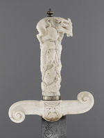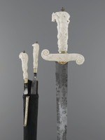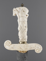 Stahl, Elfenbein, geschnitzt, Silber, vergoldet; Scheide: Leder, Holz |