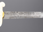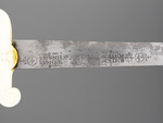 Die Klinge des Degens ist auf beiden Seiten doppelt mit „IOHANNIS AOLLICH“ je im Wechsel mit drei Reichsäpfeln bezeichnet, letztere weisen das Blatt als in Solingen gefertigt aus. Auch die Scheide des kostbaren Degens ist aufwändig gearbeitet, und der Holzkorpus mit geprägtem Leder verkleidet. Das Mundblech ist verloren, doch der mit Rankendekor verzierte Tragehaken und das Ortband sind, wie die Hilzenringe und Knaufknöpfe des Degens und der Messer, aus vergoldetem Silber gearbeitet.