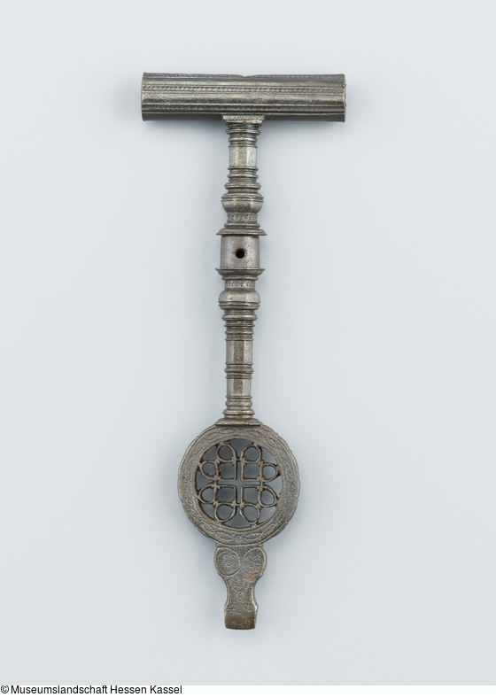 Für den Gebrauch der Büchsen, Flinten und Pistolen galt es zur Jagd im 17. Jahrhundert einiges an notwendigen Gerätschaften mit sich zu führen, wie etwa Pulverhörner oder Schrotkugelbeutel. Für die Vorbereitung einer Radschlosswaffe war zudem der Radschlossschlüssel unabdingbar, diente dieser doch zum Spannen der Feder, mittels derer das Reibrad beim betätigen des Abzuges in Rotation versetzt wurde. (Zum Mechanismus des Radschlosses siehe z.B. KP NT 107).