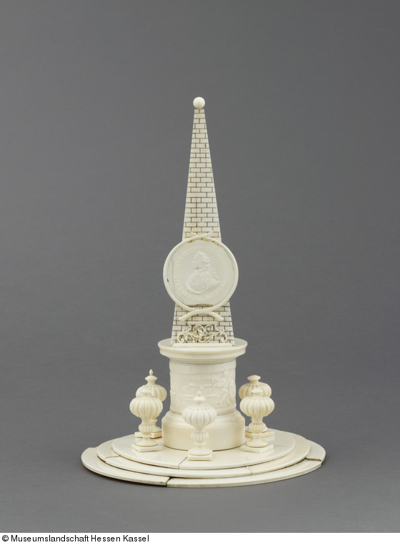 Das Miniaturdenkmal gilt als Werk des späteren hessischen Kurfürsten Wilhelm I. (1743-1821) und stammt aus seiner Zeit als Erbprinz und Graf in Hanau (reg. seit 1664-1685). Wie aus einer „Nota“ in einem Kasseler Inventarbuch des 18. Jahrhunderts hervorgeht, schuf er dieses und drei weitere Elfenbeindrechselkunstwerke mit eigener Hand.