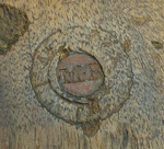 Holz, ?farbige Einlage im Holz, Buntmetall, Eisen, |