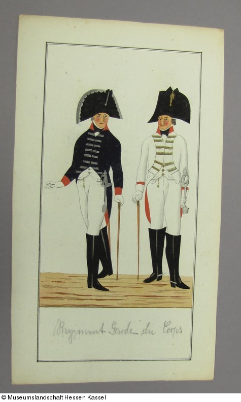 Federzeichnungen mit Uniformen der kurhessischen Armee: "Regiment Garde du Corps"