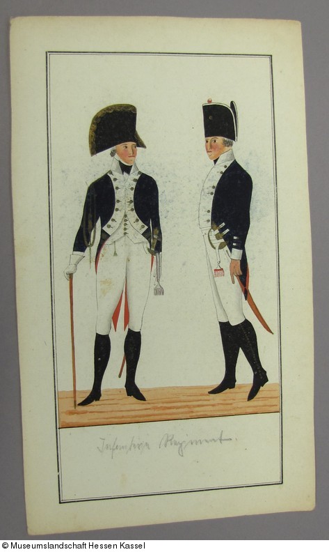 Federzeichnungen mit Uniformen der kurhessischen Armee: "Infanterie Regiment"