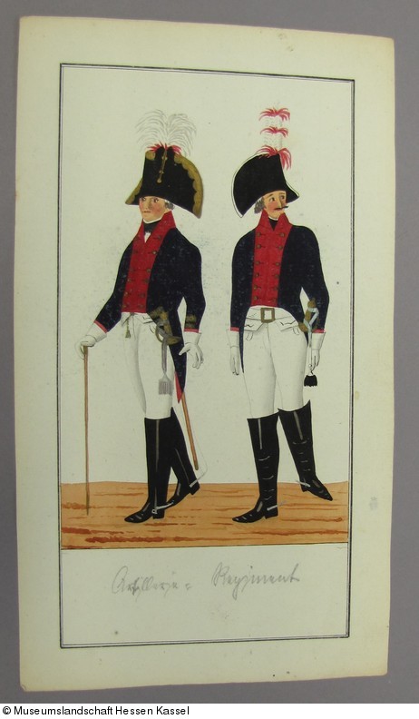 Federzeichnungen mit Uniformen der kurhessischen Armee: "Artillerie=Regiment"