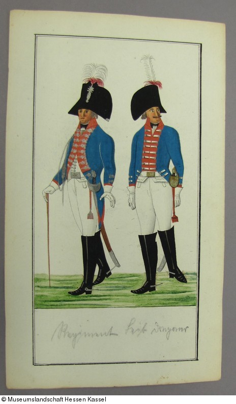 Federzeichnungen mit Uniformen der kurhessischen Armee: "Regiment Leibdragoner"
