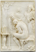 Der Elfenbeinschnitzer ließ oben und an den Seiten einen sehr schmalen Rand stehen, sodass die Szene von einem schmalen Elfenbeinrahmen umgeben ist. Dadurch wird die Tiefenwirkung des Reliefs verstärkt, bei dem Dobbermann zwischen vollplastischen Elementen und zartem Flachrelief variierte. Auf dieselbe Weise bearbeitete er drei andere Elfenbeinreliefs in der Sammlung: das geringfügig größere Relief Susanna im Bade (KP B VI/II.23) und die noch etwas größeren, ebenfalls mythologischen Reliefs Pluto und Proserpina (KP B VI/II.42) und Herkules und Dejanira (KP B VI/II.43).