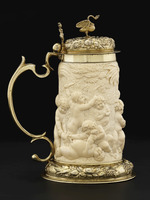 Silbergefasster Elfenbeinhumpen mit Kinderbacchanal
