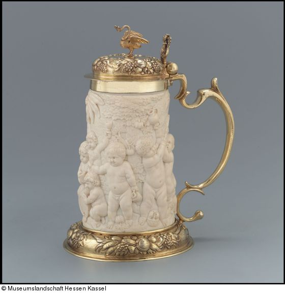 Elfenbein, geschnitzt; Silber, gegossen, getrieben, punziert, ziseliert, vergoldet |