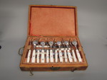 Besteck, 18-teilig mit lederbezogenem Besteckkasten