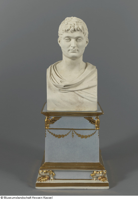 Biskuitporzellan, auf glasiertem Porzellansockel ,mit Goldstaffage |