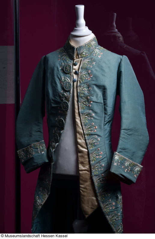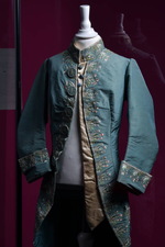 Der Justaucorps (eng am Körper anliegender Herrenrock) gibt Rätsel auf. Seine Schnittform weist dem ersten Eindruck nach in die 2. Hälfte des 18. Jahrhunderts. Allerdings wurde das Kleidungsstück mindestens zweimal umgeändert. Alle außen sichtbaren Nähte sind mit der Nähmaschine genäht, sodass die Änderungen nach 1851, dem Beginn der Nähmaschinenproduktion, vorgenommen worden sein müssen. Die ursprüngliche Form wurde dabei so stark verändert, dass die Jacke nur noch schwer zu datieren ist.