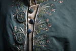 Seide, Baumwolle, Metall (Haken, Öse), Holz/Pappe(?) (Inlay Knöpfe) / genäht und mit verschiedenen Zierstichen bestickt |