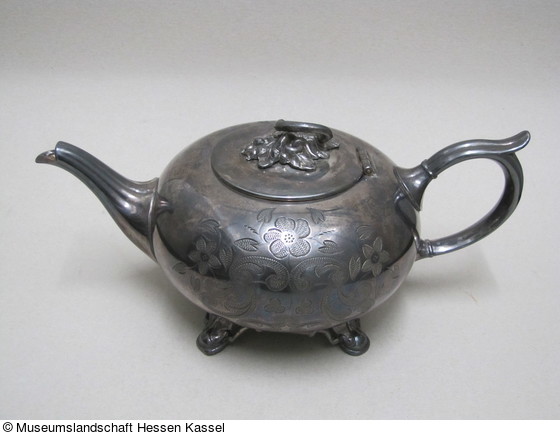 auf der Unterseite: GERHARDI & CO MANUFACTORERS OF BRITANNIA METAL... 101, 5 102 4 (101, 5 und 102, alles gepunzt, zusätzlich graviert: 4.; Rest unleserlich);