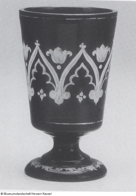 Die Rückbesinnung der um 1800 entstandenen Romantik auf das Mittelalter, in deren Folge auch Renaissance und Barock eine neue Wertschätzung erfuhren, führte im Kunstgewerbe bis etwa zum Ende des Jahrhunderts zur Popularität historisierender Formen. – Auf den seit etwa 1830 in Böhmen hergestellten Farbgläsern kommt gotosierender Dekor als Bemalung seltener vor. Dieser Schmuck findet sich häufiger auf geschliffenem Überfangglas.